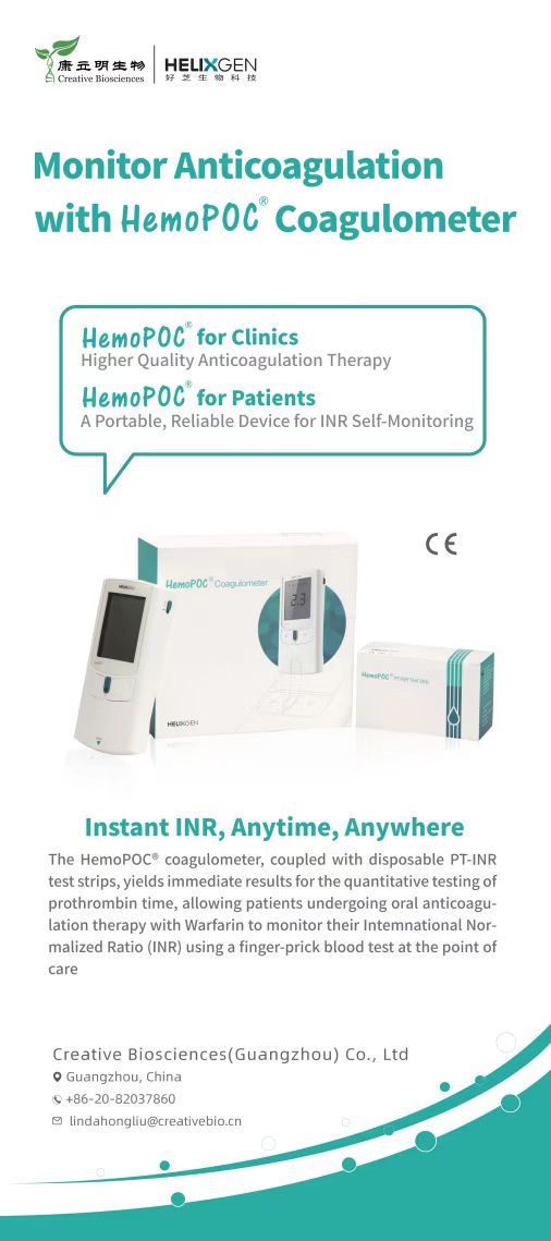 此外,康立明全資子公司好芝生物產(chǎn)品HemoPOC®凝血檢測系統(tǒng)也將亮相此次盛會。HemoPOC®凝血檢測儀是一款便攜式凝血檢測設備,與配套的檢測卡組成。HemoPOC®凝血檢測系統(tǒng),用于定量測定新鮮指尖毛細血管血的凝血酶原時間。該系統(tǒng)操作簡單,滿足即時檢測及床旁檢測的應用需求,增強抗凝管理和慢病管理的有效性。
