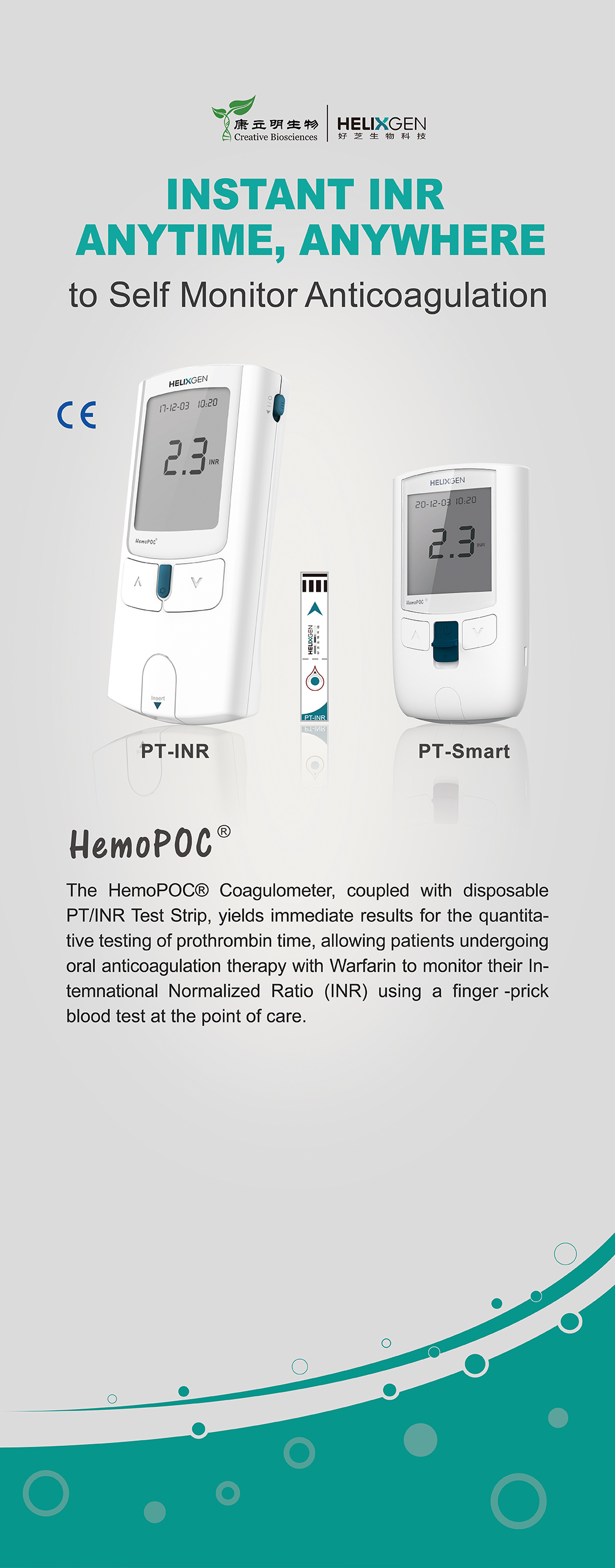 HemoPOC®凝血檢測儀是一款便攜式凝血檢測設(shè)備,與配套的檢測卡組成。HemoPOC®凝血檢測系統(tǒng),用于定量測定新鮮指尖毛細(xì)血管血的凝血酶原時(shí)間。該系統(tǒng)操作簡單,滿足即時(shí)檢測及床旁檢測的應(yīng)用需求,增強(qiáng)抗凝管理和慢病管理的有效性。