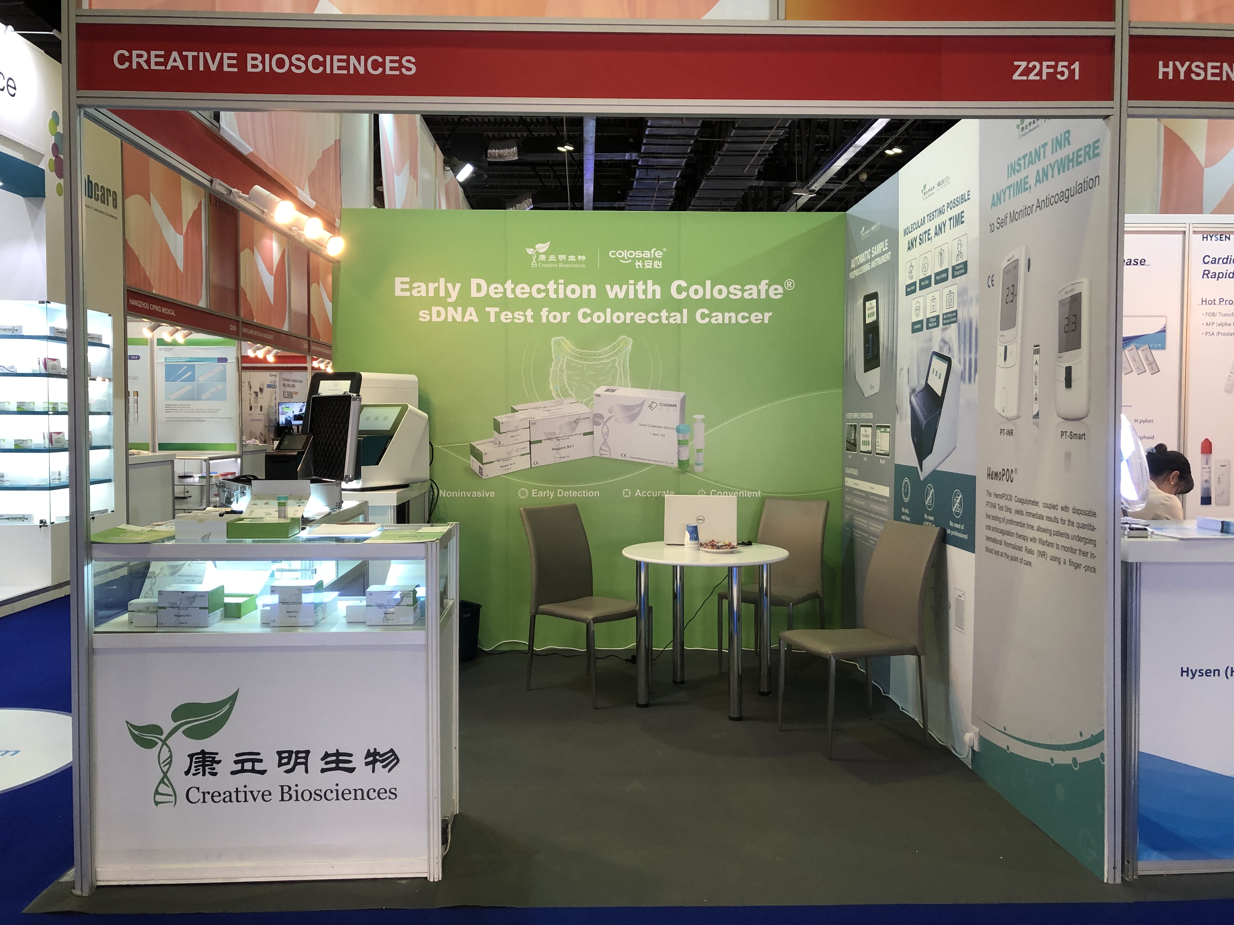 本次盛會,康立明生物攜長安心®糞便DNA腸癌檢測、久安心®膀胱癌基因檢測、會安心®肺癌基因檢測、全自動樣本預(yù)處理儀以及康立明全資子公司好芝生物產(chǎn)品HelixPOC®全自動微流控?zé)晒?/span>PCR一體機(jī)、HemoPOC®凝血檢測系統(tǒng)赴展。